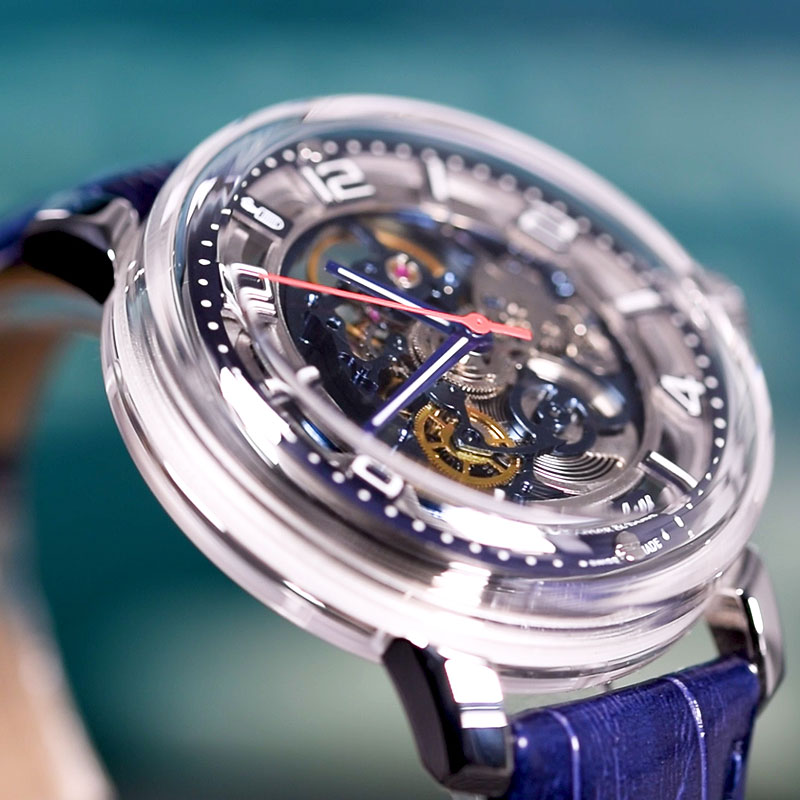 If you are fascinated by automatic machinery, the new Antarctica watch will take your breath away. The dance of its blue Swiss skeleton movement can be seen in its entirety through its all-sapphire crystal case. Your name and Limited Edition number will be genuinely engraved on the rotor of the movement, giving you an exclusive piece to enjoy the passage of time.