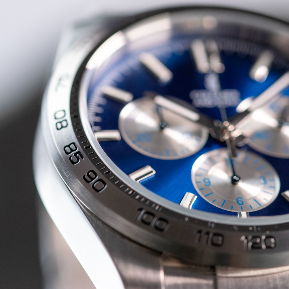 Immerse yourself in the elegance of time with our marine chronograph. Its captivating design is inspired by the deep waters of the ocean, reflecting the beauty and mystery of the sea. Blue dials mimic the depth of water, while stainless steel accents evoke the strength of the waves. A watch that connects you to nature.