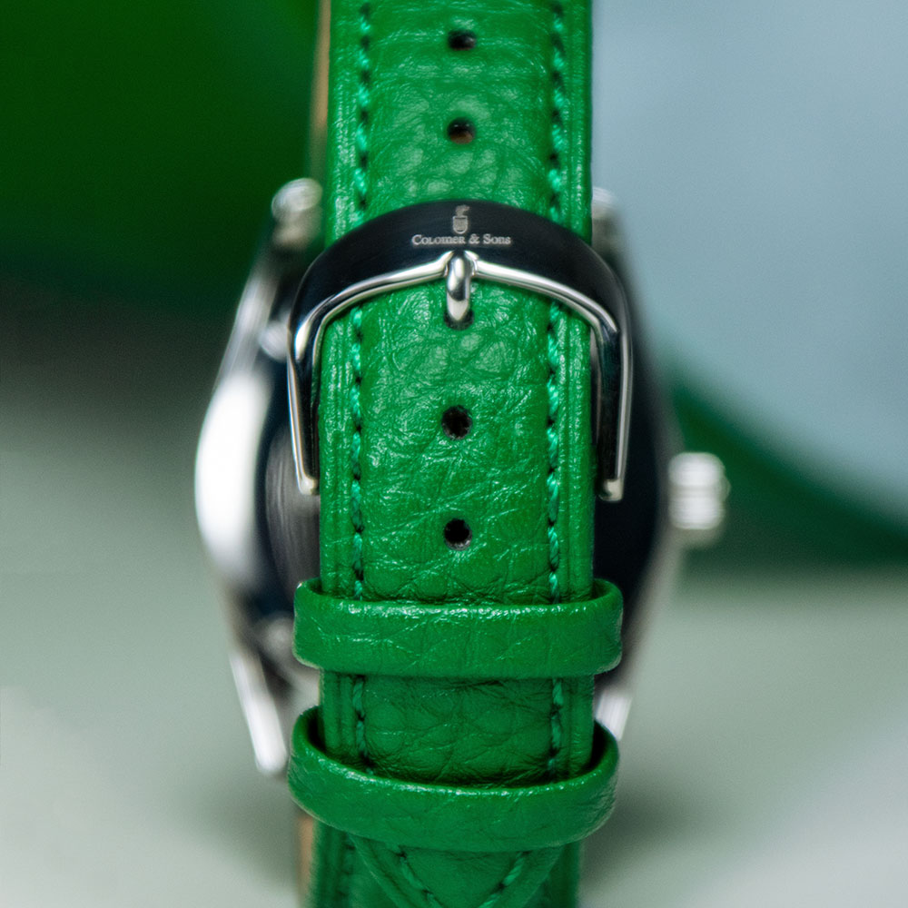 - Correa de cuero de 20 mm con cierre de hebilla.