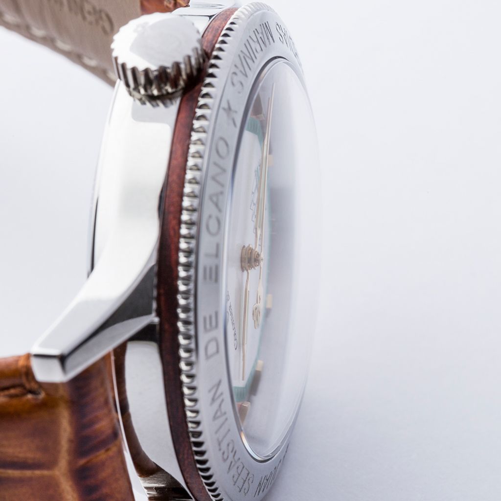 Es la primera vez que una casa relojera hace un homenaje a este gran buque de nuestra historia, y por ello ha sido creado en rigurosa edición limitada a 999 unidades. En la tapa trasera aparece grabada majestuosamente la silueta del icónico barco Juan Sebastián Elcano, acompañado del número de edición limitada. Este detalle no solo añade un valor excepcional a cada pieza, sino que también establece una conexión personal e intransferible con el portador.