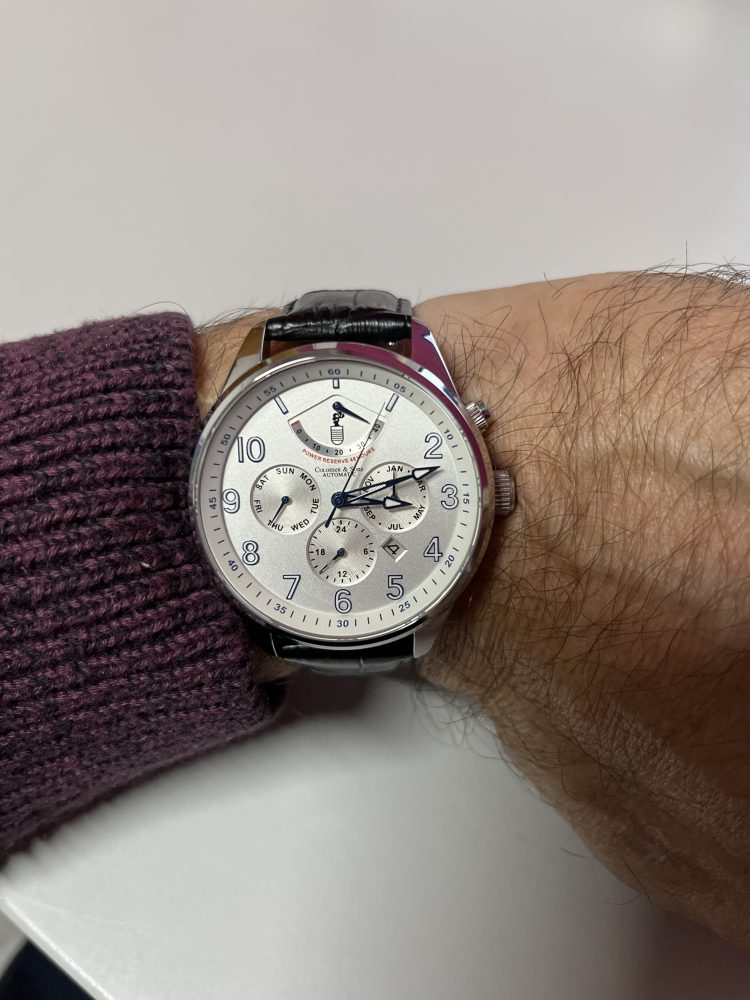 Mi primer C&S (y no será el último) es un Newton II. La pieza luce magnífica. La caja de acero está perfectamente proporcionada para resaltar la esfera del reloj con sus complicaciones. El calibre Miyota 9100 «zumba» magníficamente en su remonte por movimiento, y hace que la trotadora se desplace casi de forma continua. Su peso es proporcionado para notar que llevas el reloj en la muñeca pero sin que sea un estorbo. En conjunto es una pieza realmente exquisita y de diseño soberbio.