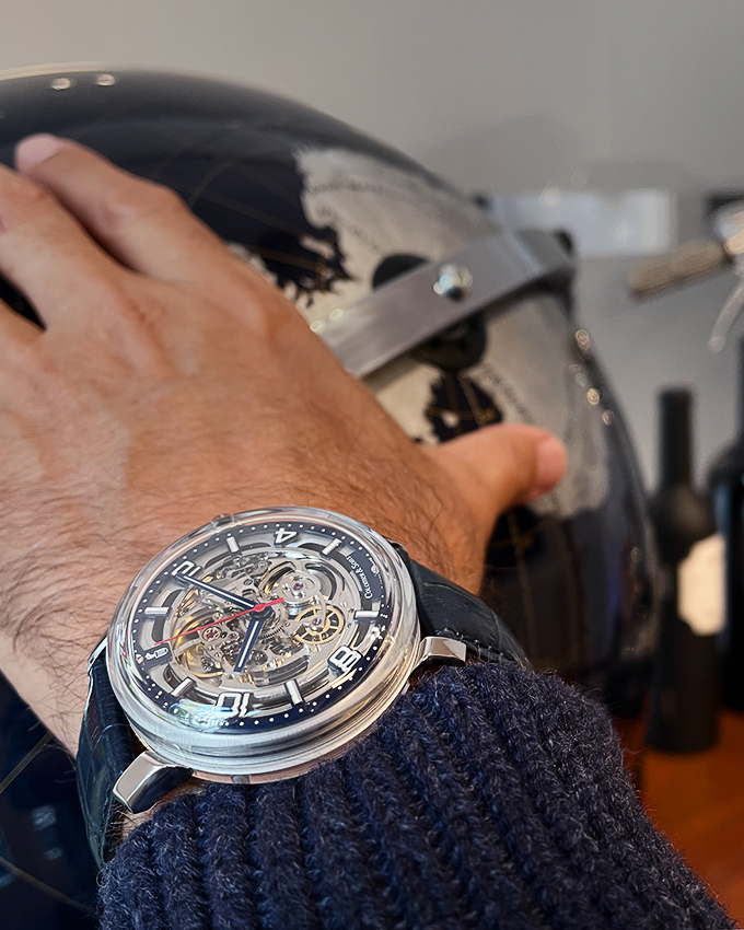 Mi padre era un fanático de los relojes y me transmitió su pasión desde que era un crío. Este reloj es impresionante y poder ver toda la maquinaria a través de la caja transparente es fascinante. En las fotos se ve hermoso pero puesto en la muñeca es espectacular. Mis felicitaciones a Colomer & Sons por crear una pieza tan bella.