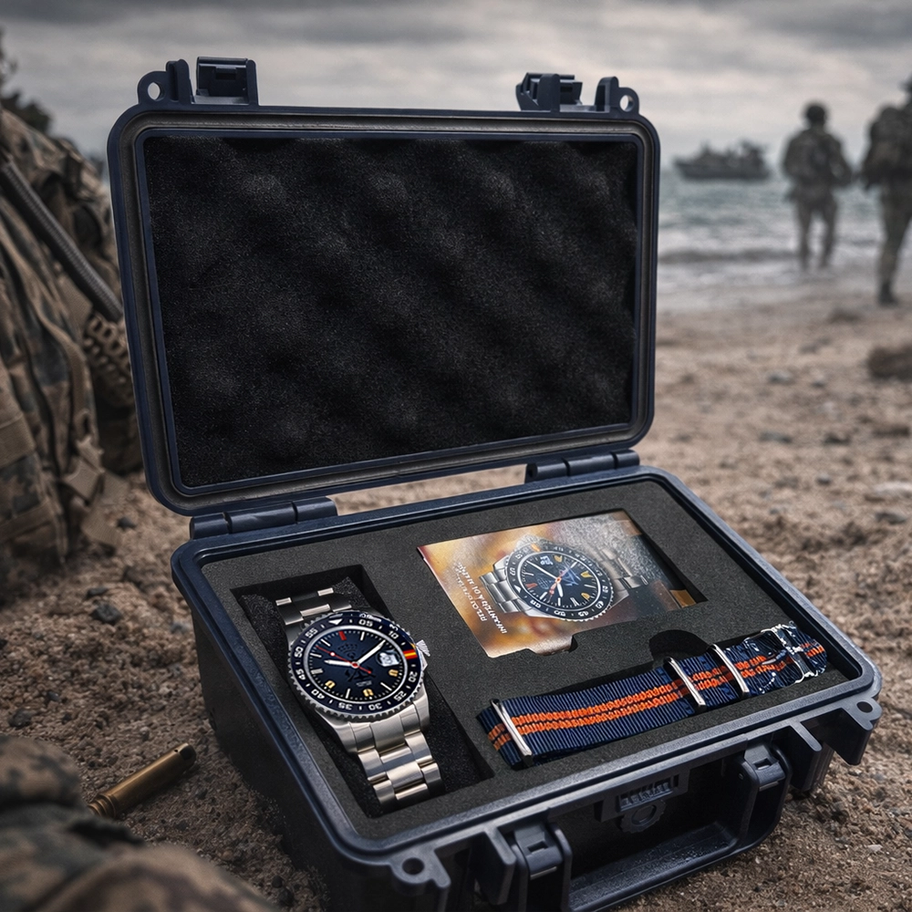 Desarrollar este reloj para la Infantería de Marina Española ha sido un auténtico privilegio para nuestro equipo. Desde el primer momento, el objetivo fue claro: crear una pieza capaz de estar a la altura de la historia, el valor y la tradición de uno de los cuerpos de infantería de marina más antiguos del mundo. El reloj fue presentado oficialmente en el Tercio de Armada (TEAR) de San Fernando, Cádiz, un lugar profundamente ligado a la identidad y al legado de la Infantería de Marina. Más que un reloj, es un símbolo de respeto y orgullo compartido. ⚓