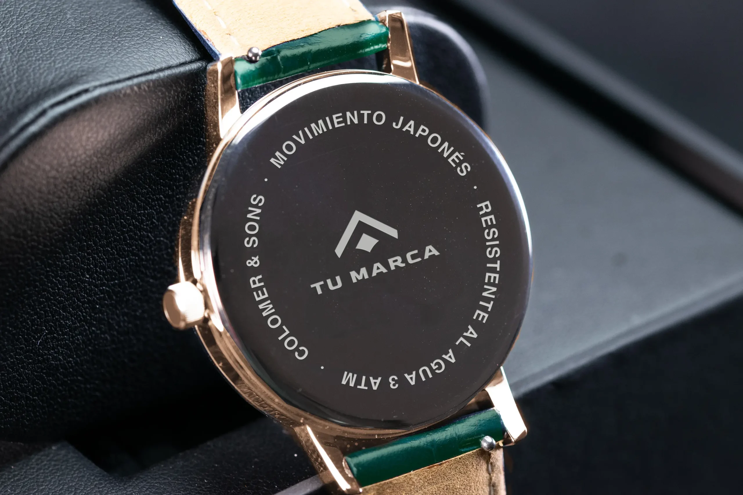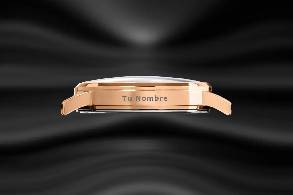 Personalizamos la tapa trasera de cada reloj con el logo de tu marca o cualquier inscripción especial. Puede ser un aniversario, un evento corporativo, una fecha memorable o un mensaje único. Este detalle convierte cada pieza en un reloj exclusivo y lleno de significado. Una forma elegante de hacer que tu regalo o recuerdo sea verdaderamente irrepetible.