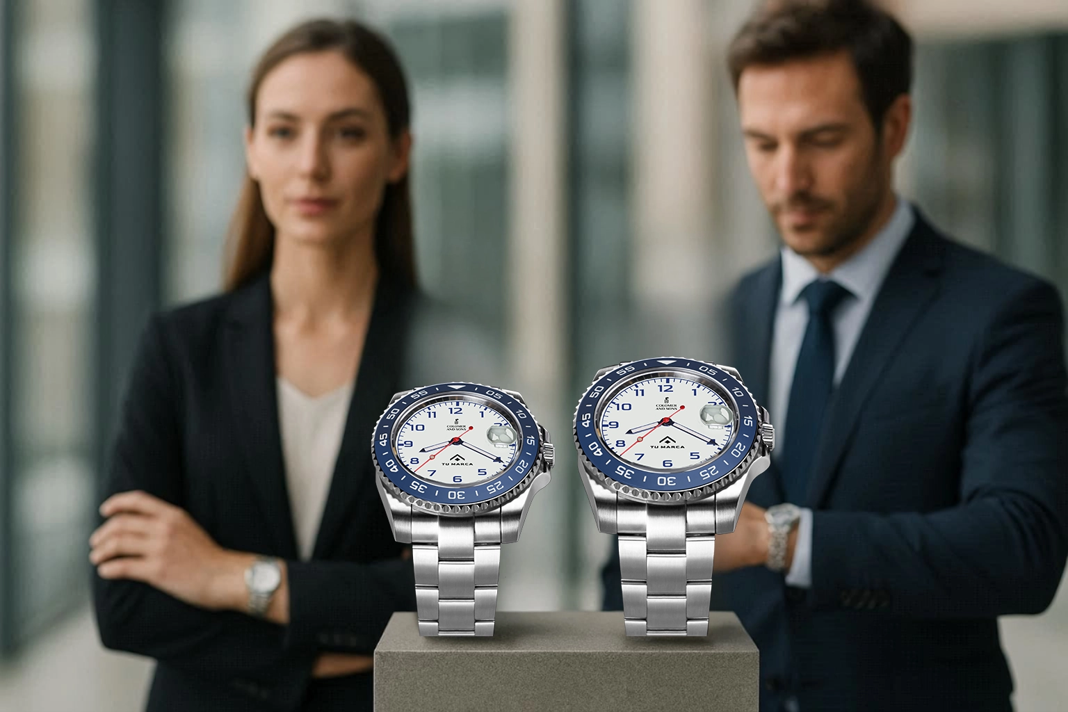 Personalizamos tu reloj con los colores que prefieras, ya sean corporativos o personales, tanto en el dial como en el bisel. Esto permite crear un diseño que refleje la identidad de tu marca o un estilo único y distintivo. La combinación de colores convierte cada reloj en una pieza original y perfectamente alineada con tu imagen.