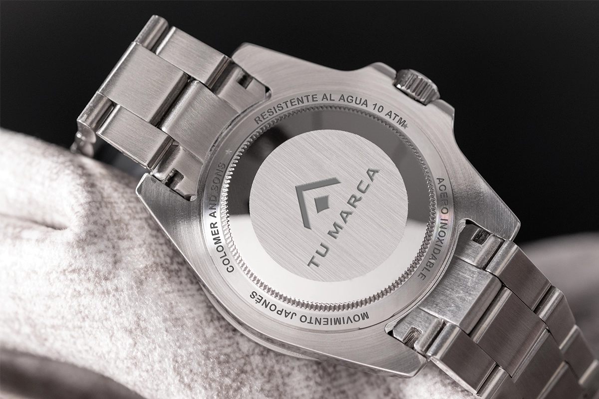 Personalizamos la tapa trasera de cada reloj con el logo de tu marca o cualquier inscripción especial. Puede ser un aniversario, un evento corporativo, una fecha memorable o un mensaje único. Este detalle convierte cada pieza en un reloj exclusivo y lleno de significado. Una forma elegante de hacer que tu regalo o recuerdo sea verdaderamente irrepetible.