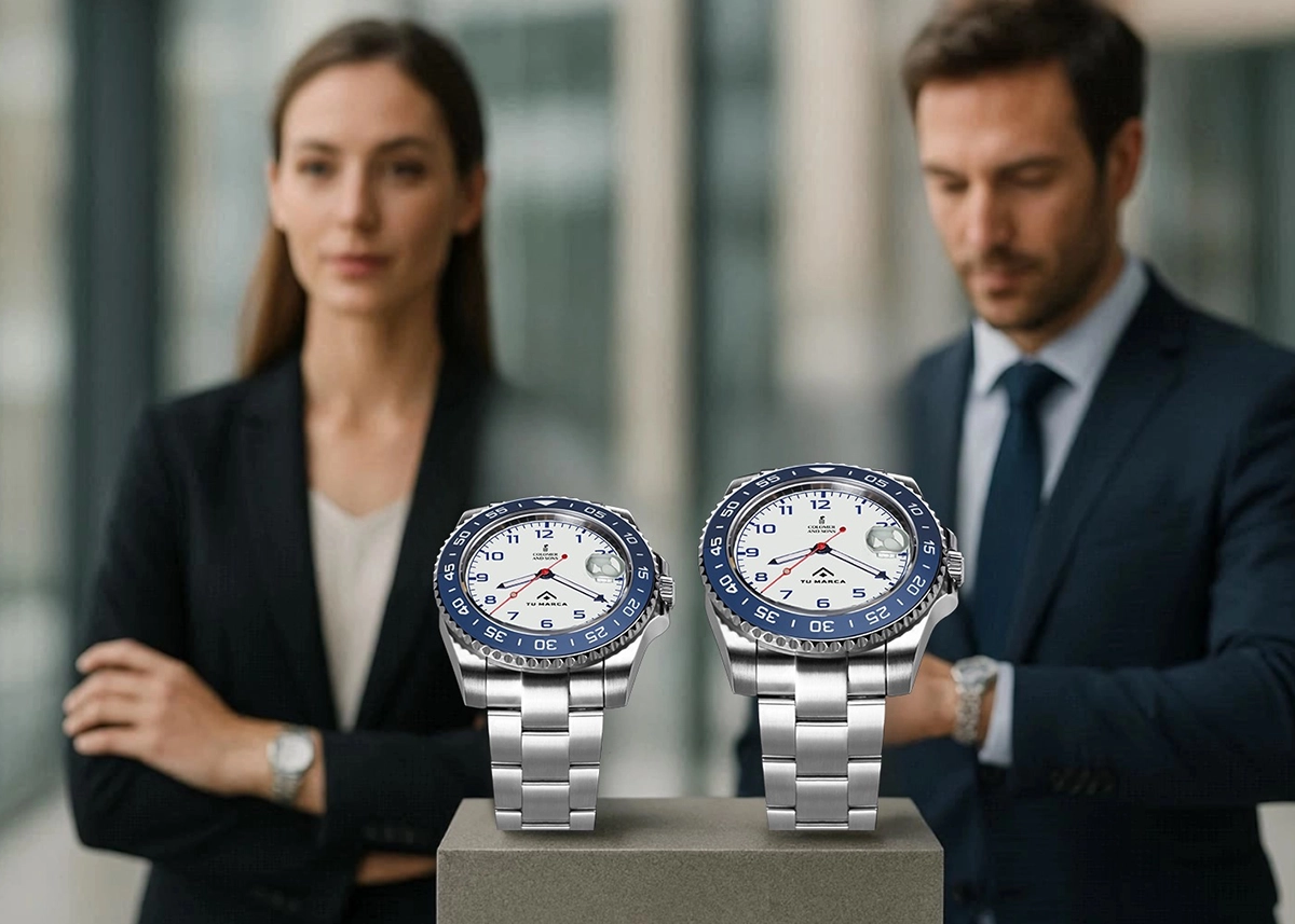 Personalizamos tu reloj con los colores que prefieras, ya sean corporativos o personales, tanto en el dial como en el bisel. Esto permite crear un diseño que refleje la identidad de tu marca o un estilo único y distintivo. La combinación de colores convierte cada reloj en una pieza original y perfectamente alineada con tu imagen.