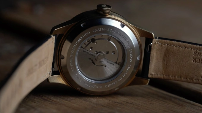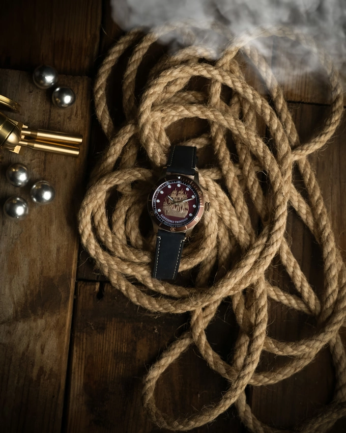 Una caja de bronce vivo, un cristal de zafiro, un fiable movimiento automático y una esfera esculpida en 3D dan vida al legado del barco.