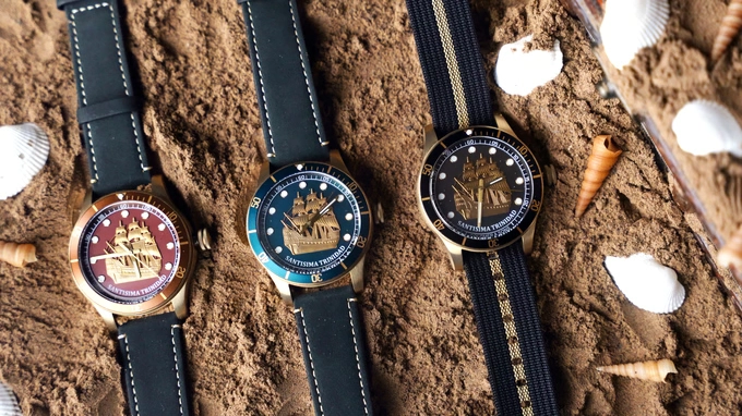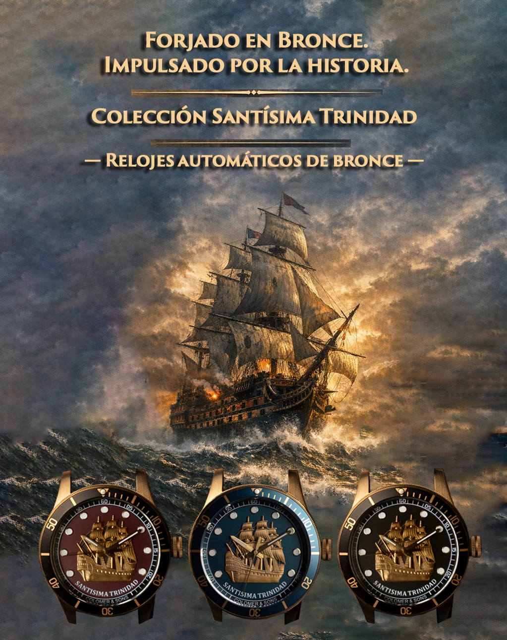 Relojes automáticos de bronce inspirados en el legendario buque de guerra español del siglo XVIII, el Santísima Trinidad.